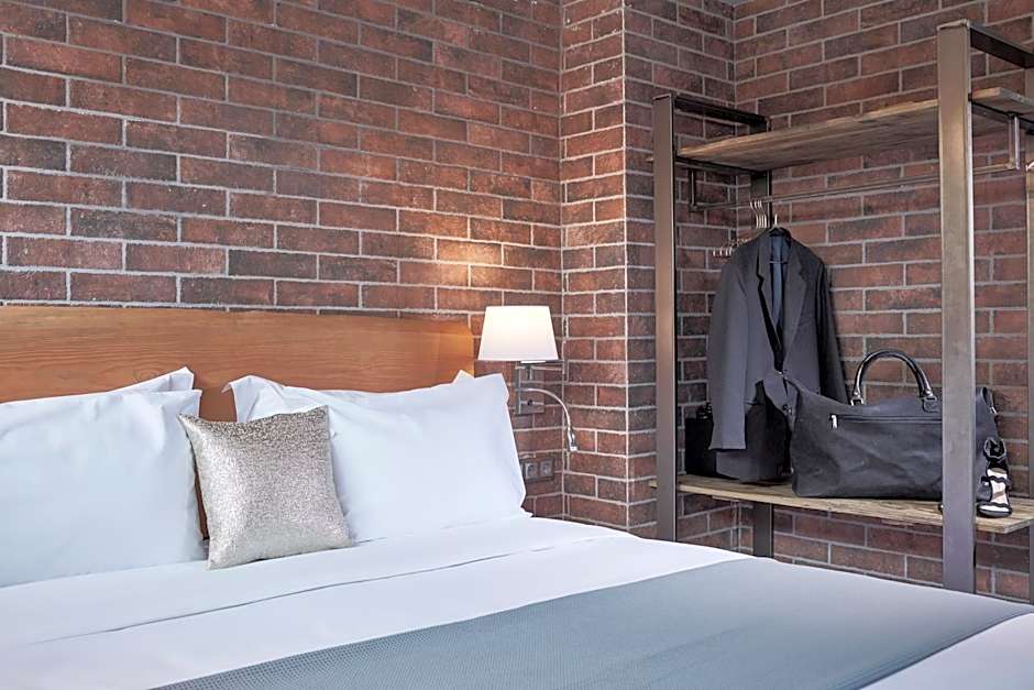 Fitted with red-brick walls, handcrafted furniture and minimal decor, this open-plan suite features a flat-screen TV, mini-bar and air conditioning.